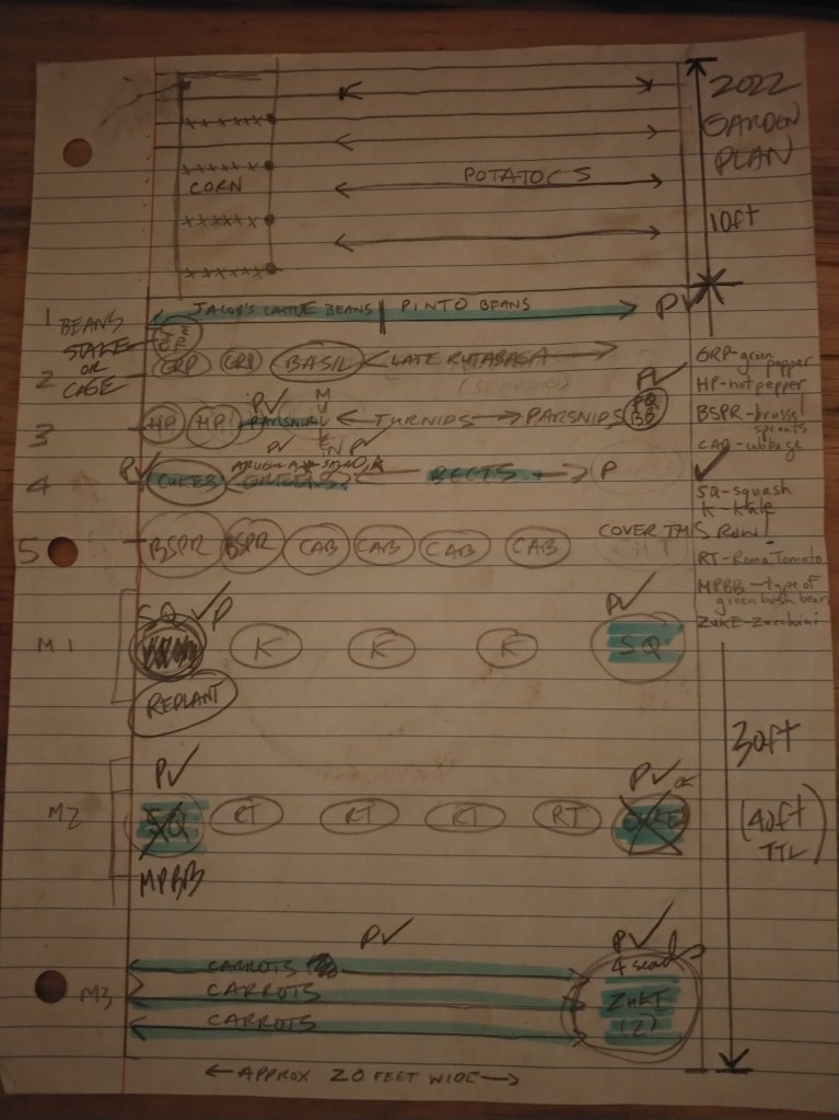 What is important about this is not that it’s perfect, but that I have it and it makes sense to me. If you haven’t recorded your planting yet, it’s not too late to draw something up so that you have it next spring to remind yourself. I hope this is encouraging to see that even a rough record like this can be effective. My new motto is “Having something done is better than waiting until it can be done perfectly.” Anyhow, there really is no perfection.