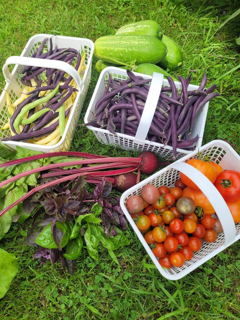 You might imagine that this took a huge team of volunteers. No, there were only four of us, and everyone felt that the time commitment was quite reasonable. Aside from planting “parties,” three of the volunteers took turns harvesting and putting produce in the Sharing Fridge every three weeks (around an hour or a bit more), and one of the volunteers did weekly food deliveries to people without cars (a similar amount of time).